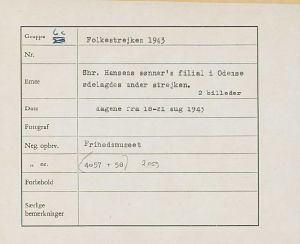Maskingenkendt tekst fra fotokuvert: Chr. Hansens sønners filial i Odense ødelagdes under strejken.