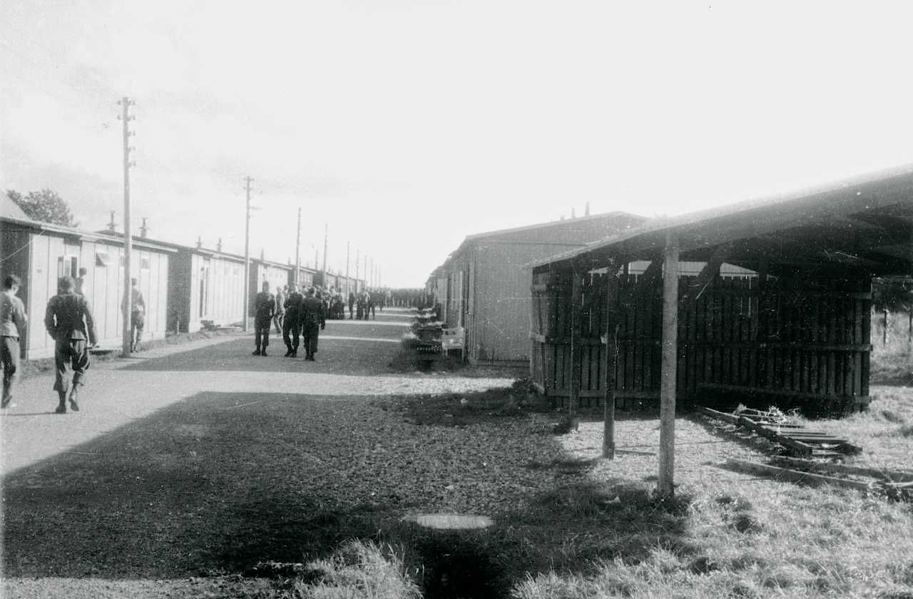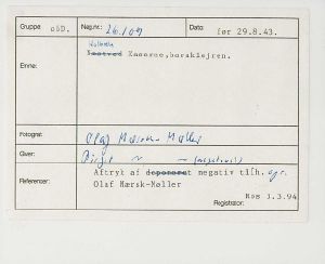 Maskingenkendt tekst fra fotokuvert: Holbæk Kaserne, baraklejren.