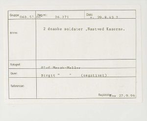 Maskingenkendt tekst fra fotokuvert: Danske soldater, Næstved Kaserne.