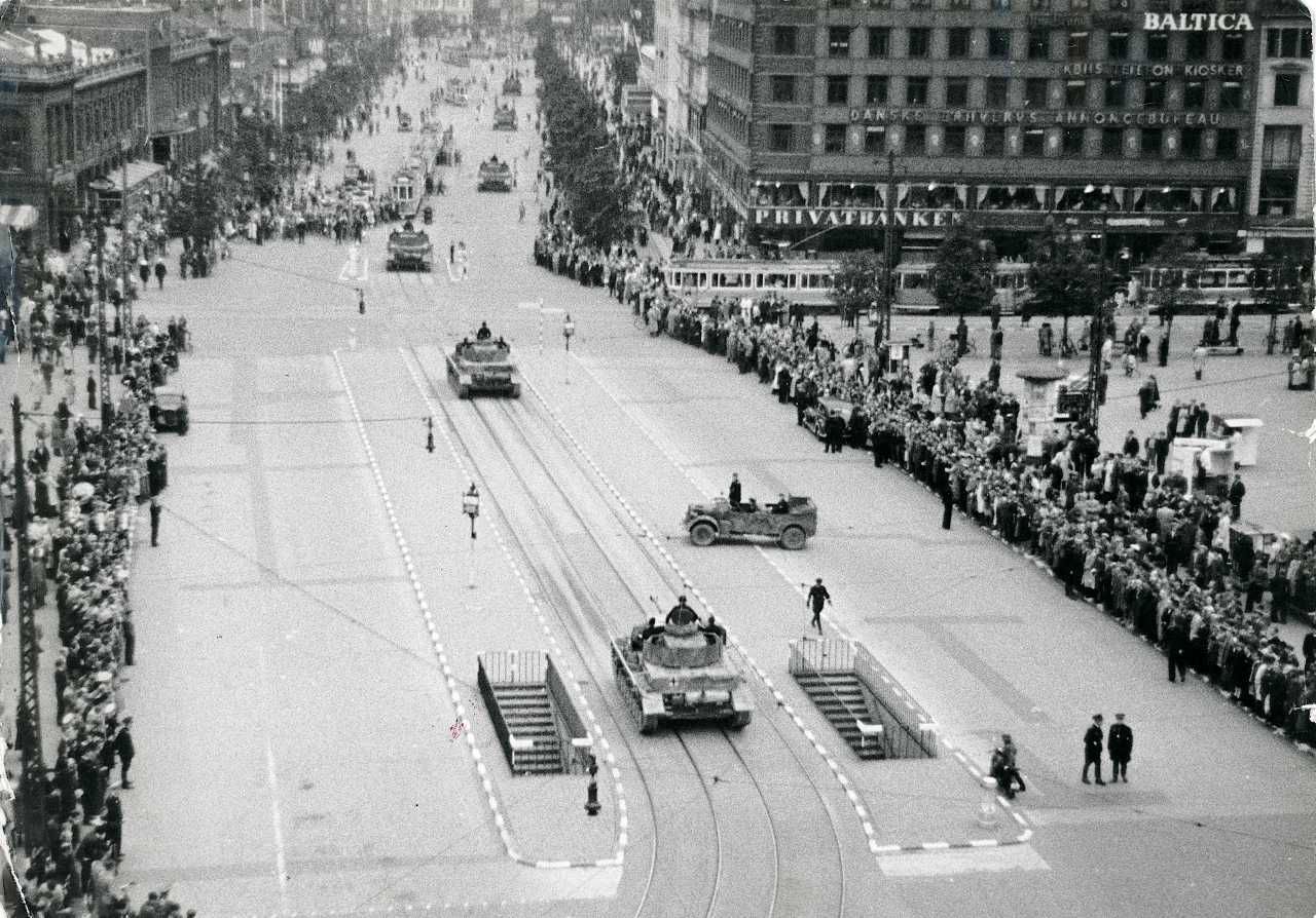 Maskingenkendt tekst fra fotokuvert: Tysk parade på Rådhuspladsen