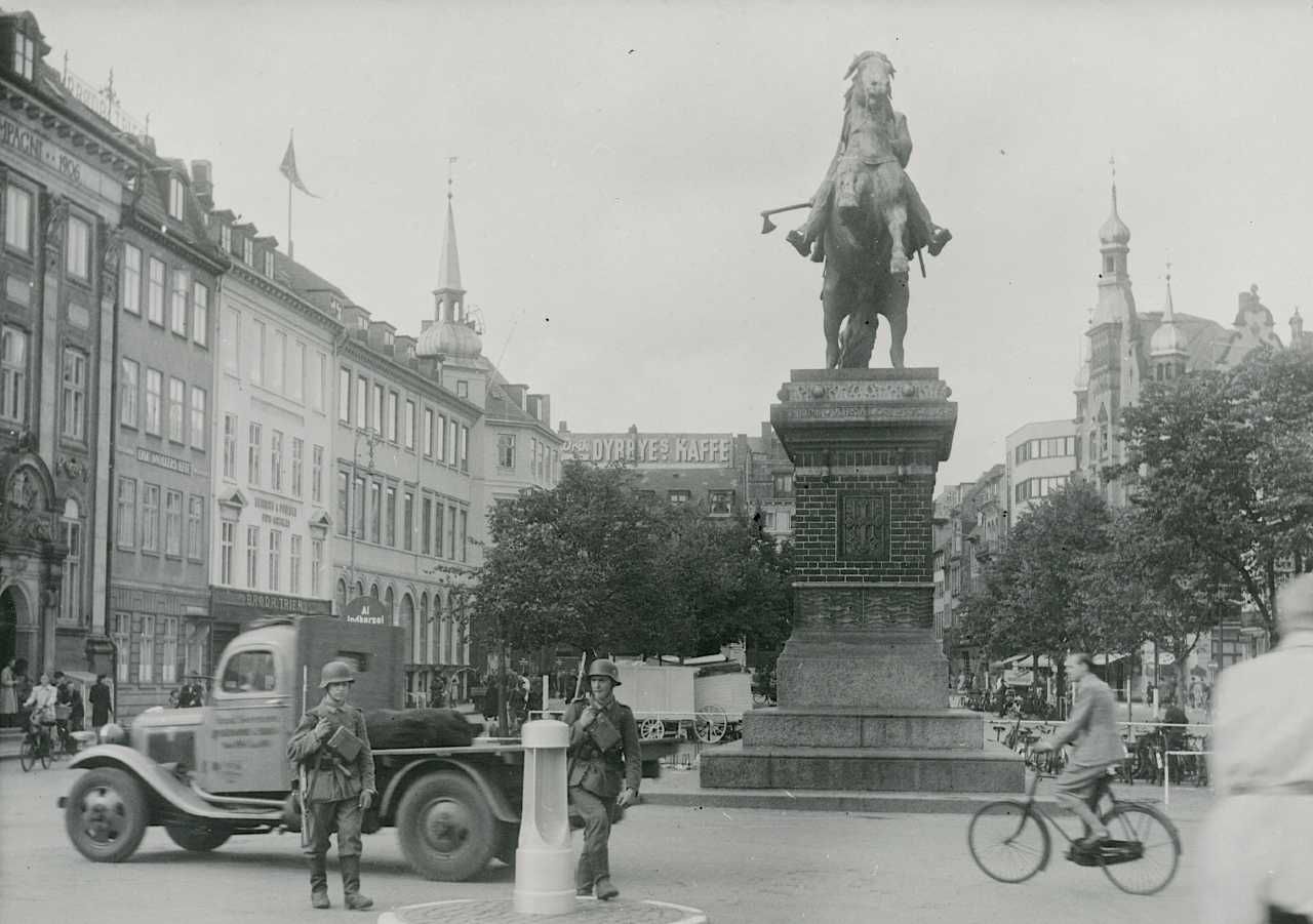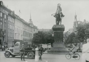 To tyske soldater på Højbro Plads i København under undtagelsestilstanden d. 29. august 1943