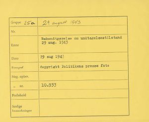 Maskingenkendt tekst fra fotokuvert: Bekendtgørelse om undtagelsestilstand 29 aug. 1943