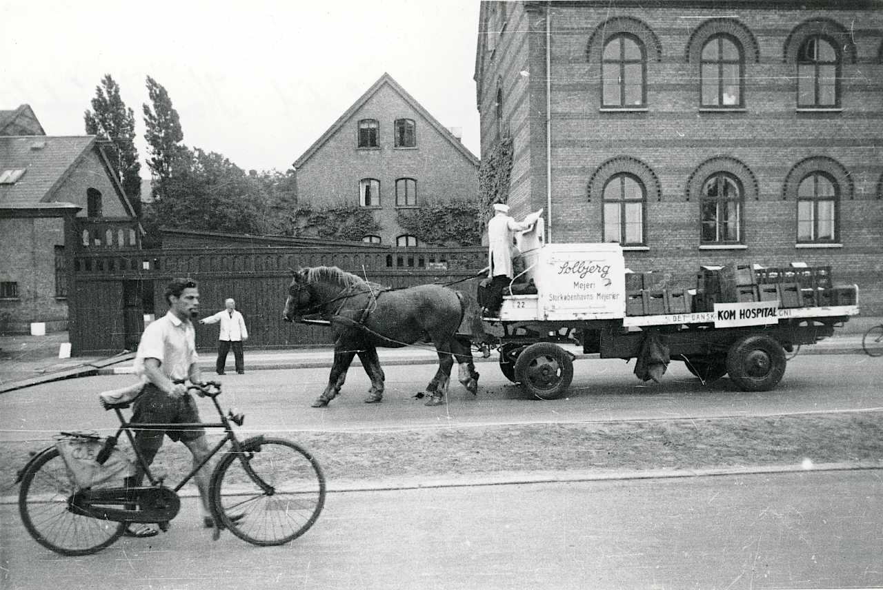 Maskingenkendt tekst fra fotokuvert: "Solbjerg" kører Carlsberg øl til Kommunehospitalet