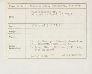 Maskingenkendt tekst fra fotokuvert: Vesterbrogade nr. 79. På 4. sal afd. 7, DNSAP.