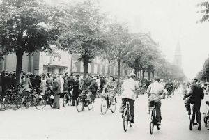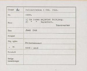 Maskingenkendt tekst fra fotokuvert: Kø foran mejeriet Solbjerg.