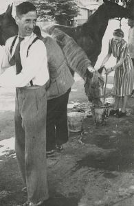 Maskingenkendt tekst fra fotokuvert: Dagligliv. Heste vandes ved Ladegaardsåen.