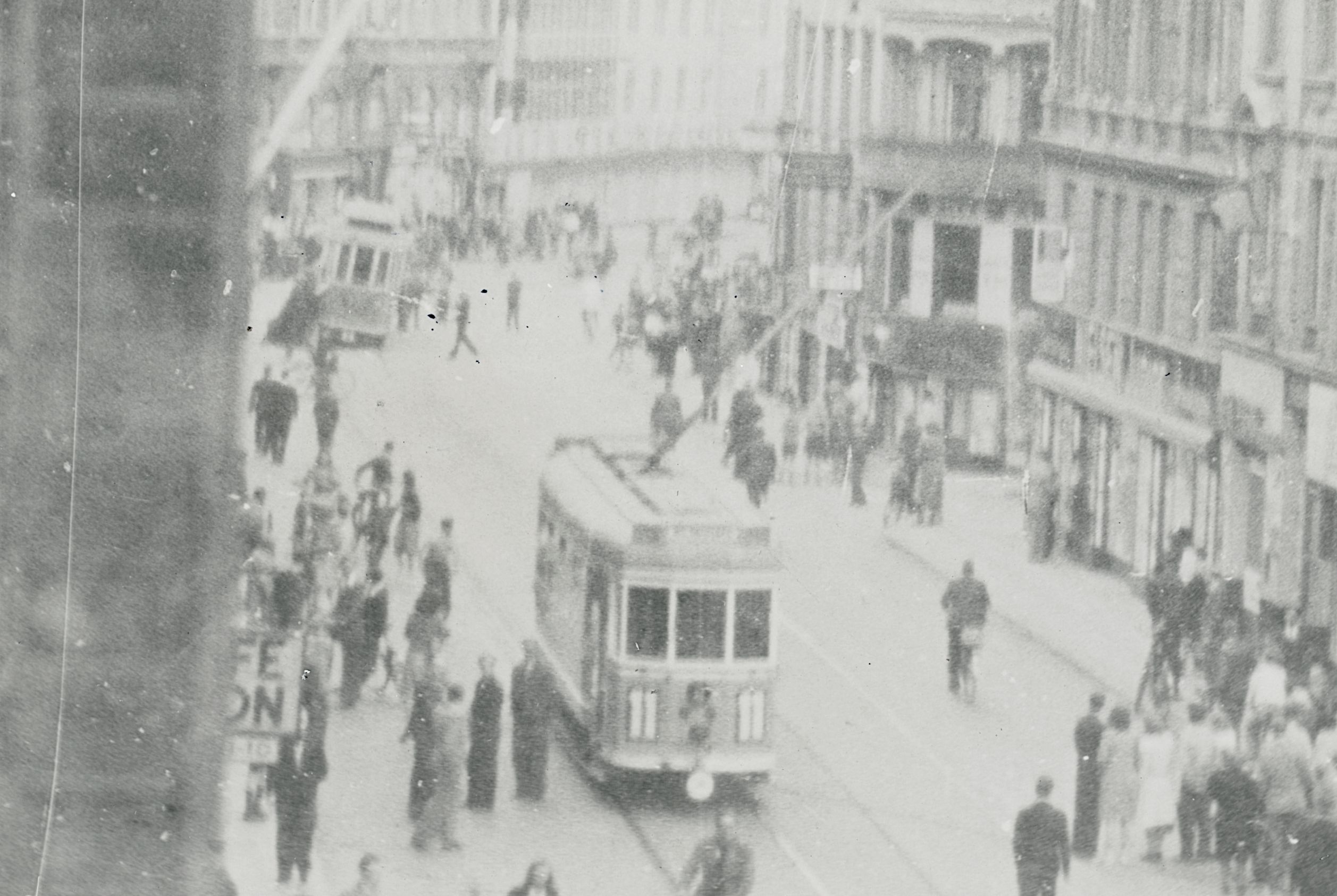 Maskingenkendt tekst fra fotokuvert: Sporvognene er bragt til standsning