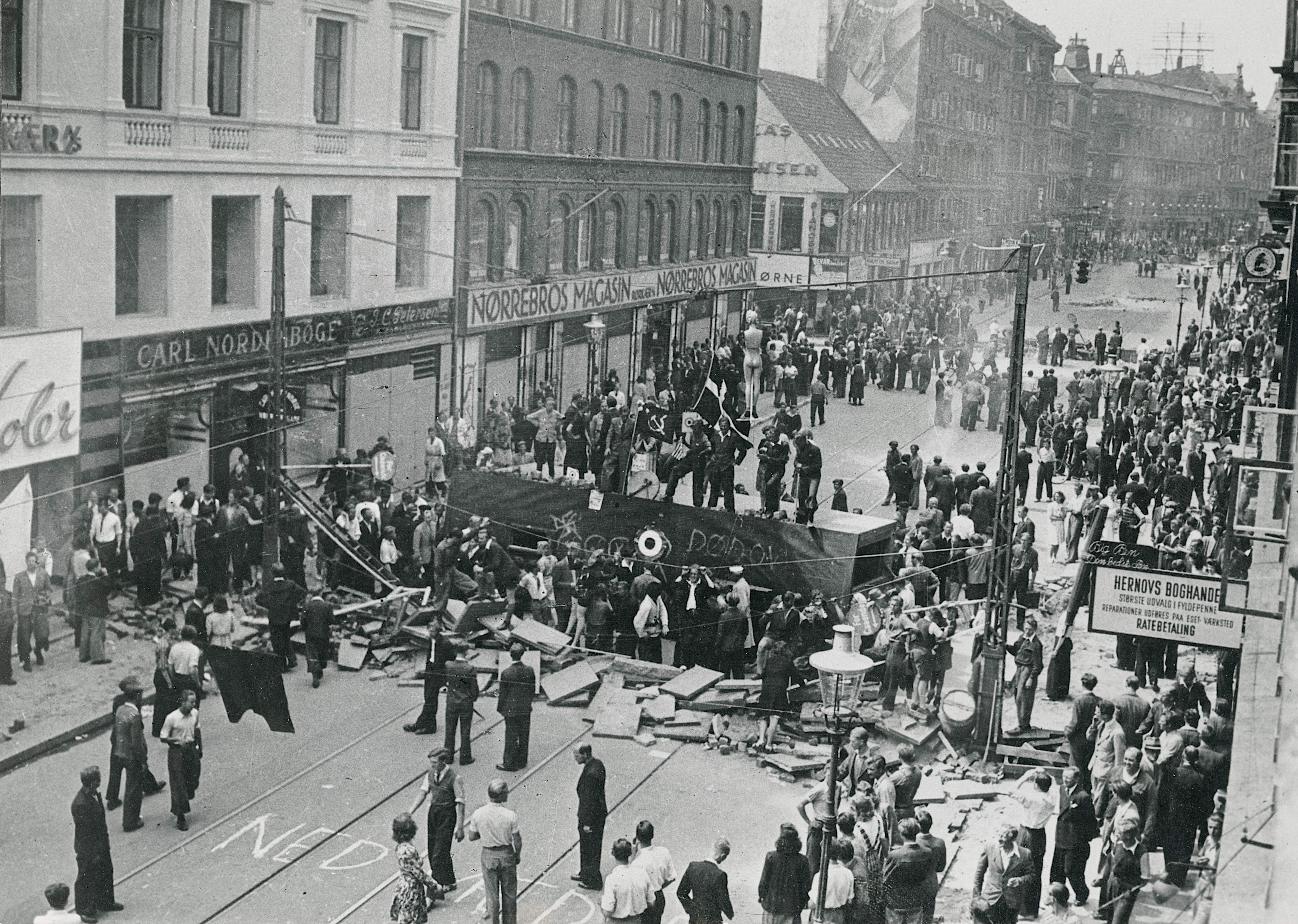 Den store barrikade på Nørrebrogade i København under folkestrejken i 1944