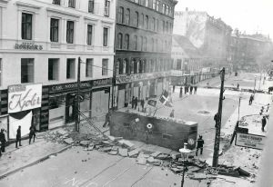 Dansk politi rydder den store barrikade på Nørrebrogade i København under folkestrejken i 1944.