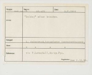 Maskingenkendt tekst fra fotokuvert: Bulldog efter branden.