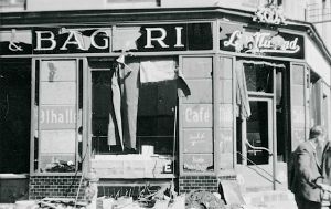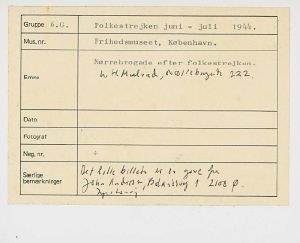 Maskingenkendt tekst fra fotokuvert: Nørrebrogade efter folkestrejken.