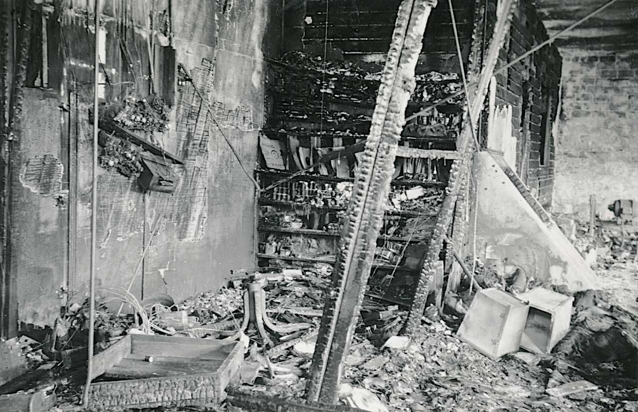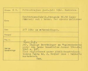 Maskingenkendt tekst fra fotokuvert: Konfektionsfabrik, Stengade 36-38 sat i brand. Der syedes uniformer