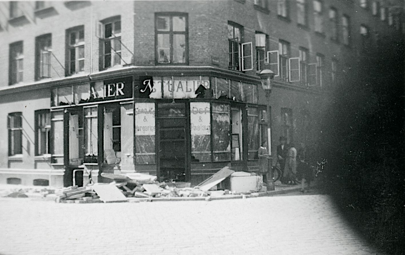 Maskingenkendt tekst fra fotokuvert: Viktualieforretning i Istedgade Nazist.