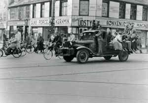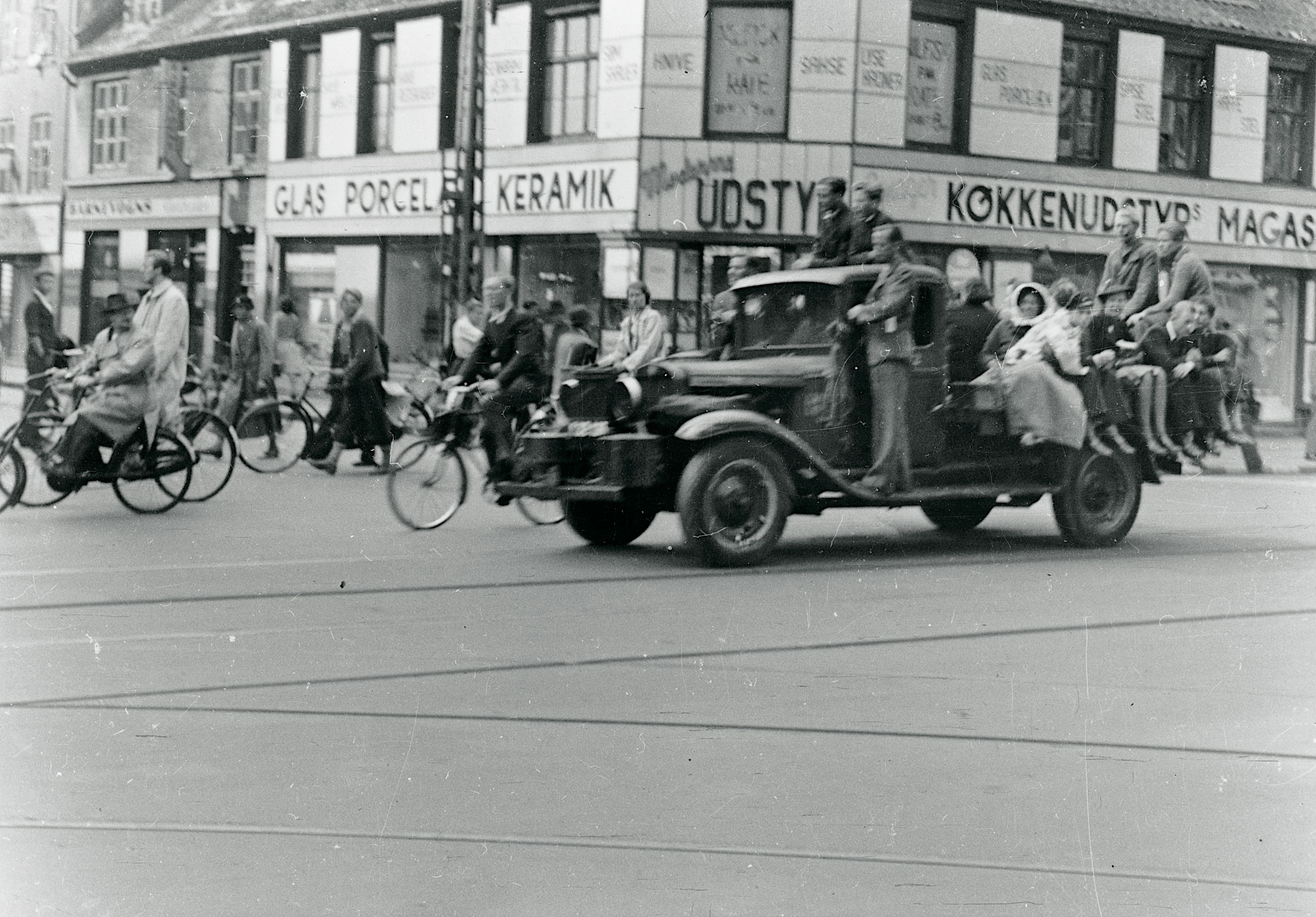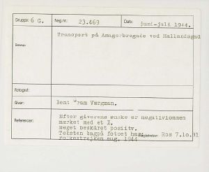 Maskingenkendt tekst fra fotokuvert: Transport på Amagerbrogade ved Hallandsgad