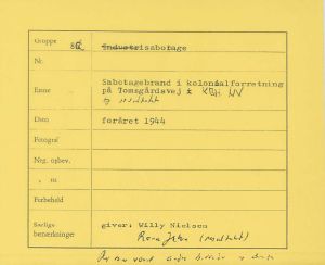 Maskingenkendt tekst fra fotokuvert: Sabotagebrand i kolonialforretning på Tomsgårdsvej