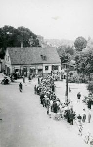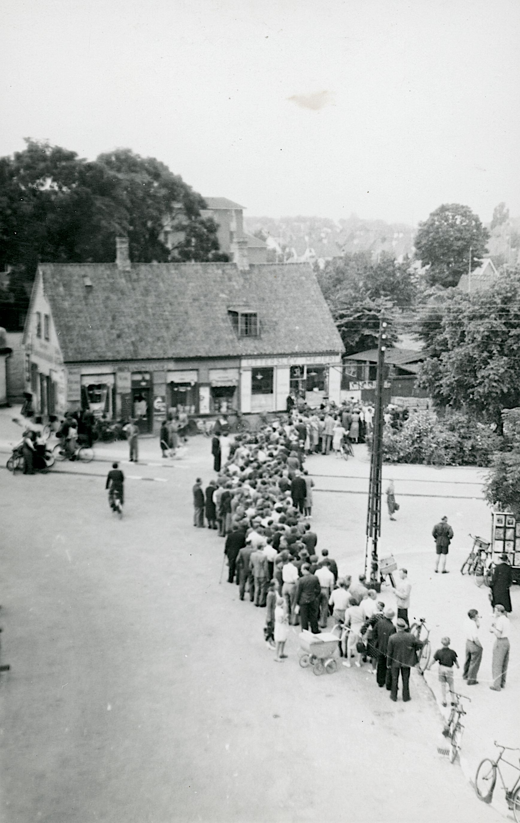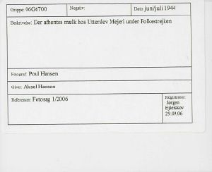 Maskingenkendt tekst fra fotokuvert: Der afhentes mælk hos Utterslev Mejeri under Folkestrejken