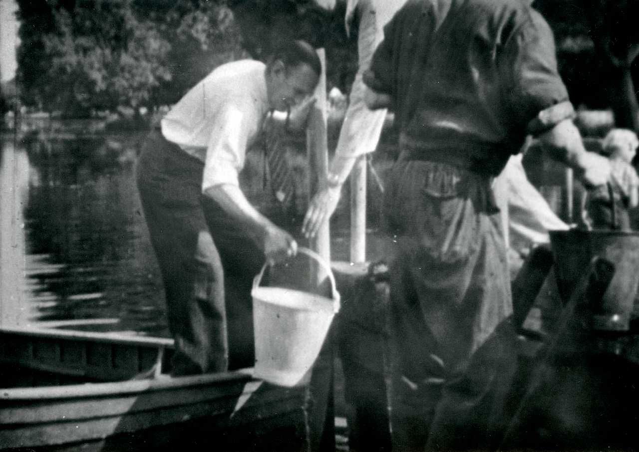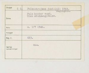 Maskingenkendt tekst fra fotokuvert: Dagligliv. Folk henter vand. Uden stedsangivelse.