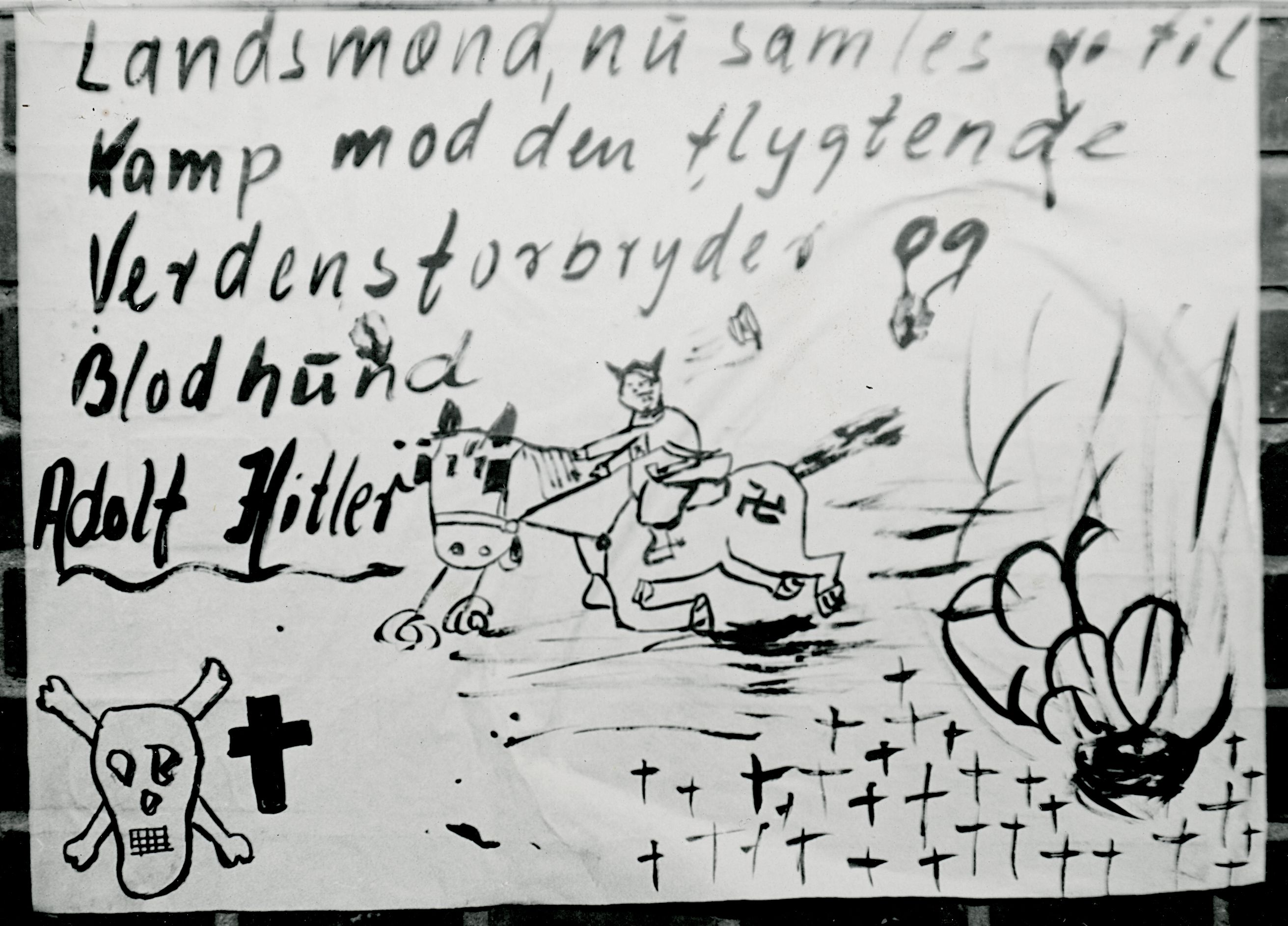 Maskingenkendt tekst fra fotokuvert: Plakat af ukendt kunstner. Efter det oplyste opsat i perioden omkring Folkestrejken