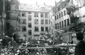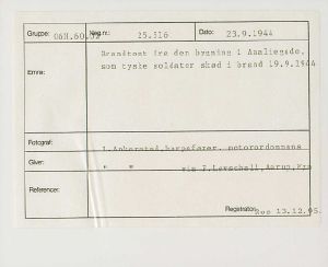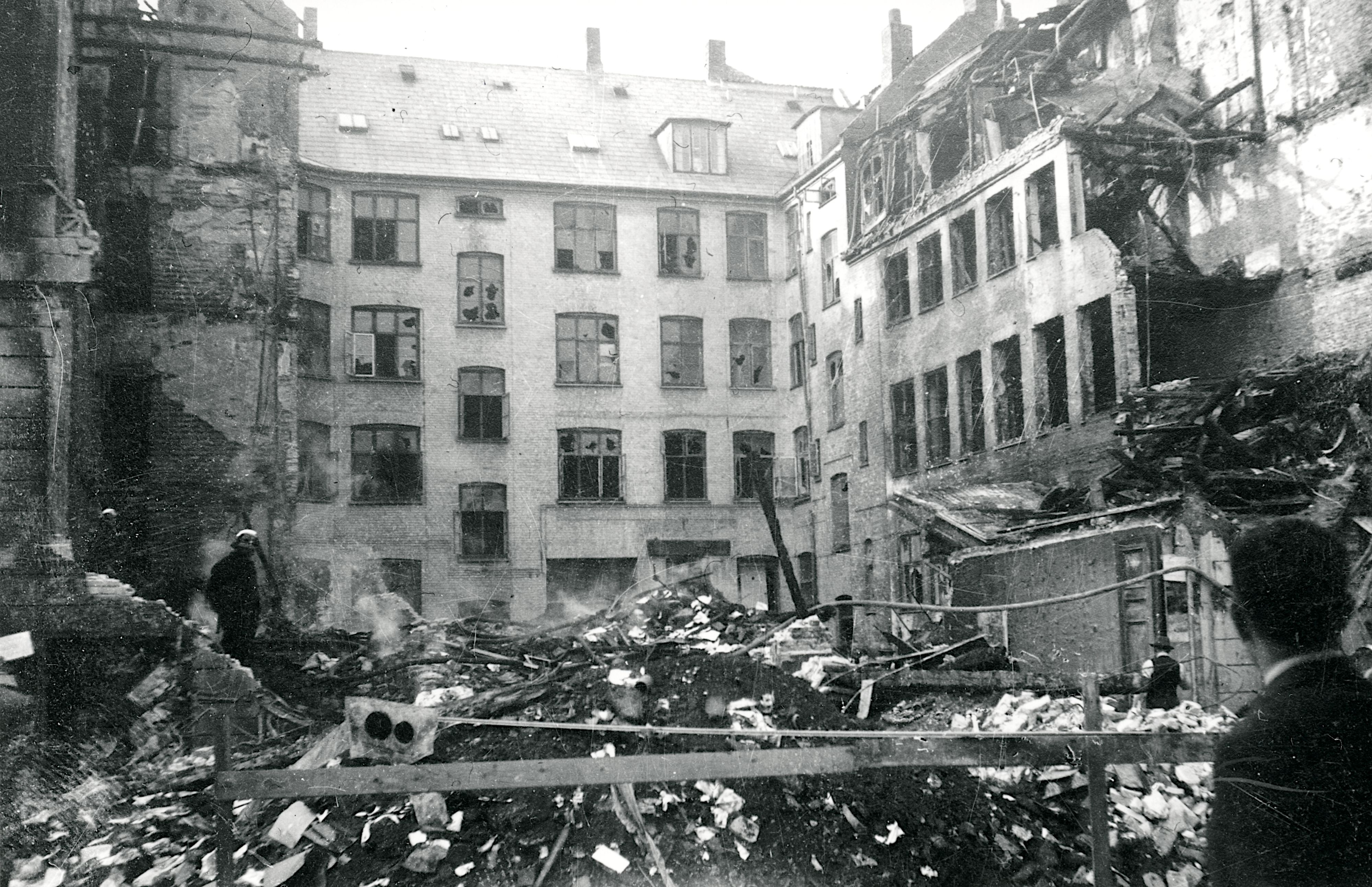 Maskingenkendt tekst fra fotokuvert: Brandtomt fra den bygning i Amaliegade, som tyske soldater skød i brand 19.9.194