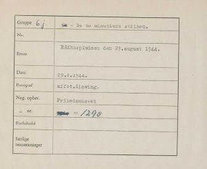 Maskingenkendt tekst fra fotokuvert: Rådhuspladsen d. 29. aug. 1944.