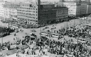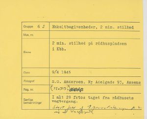 Maskingenkendt tekst fra fotokuvert: 2 min. stilhed på Rådhuspladsen i Kbh.