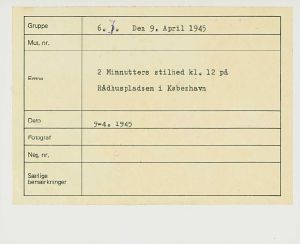Maskingenkendt tekst fra fotokuvert: 2 min. stilhed på Rådhuspladsen i Kbh.