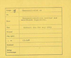 Maskingenkendt tekst fra fotokuvert: Churchill-klubbens meriter som amerikansk tegneserie.