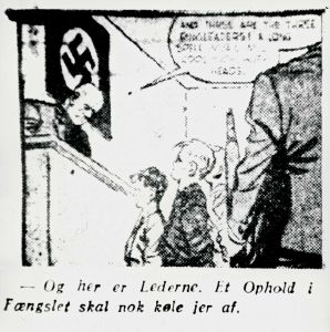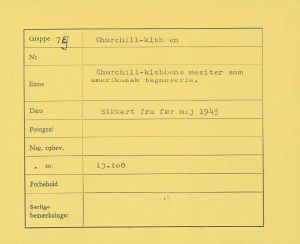 Maskingenkendt tekst fra fotokuvert: Churchill-klubbens meriter som amerikansk tegneserie.