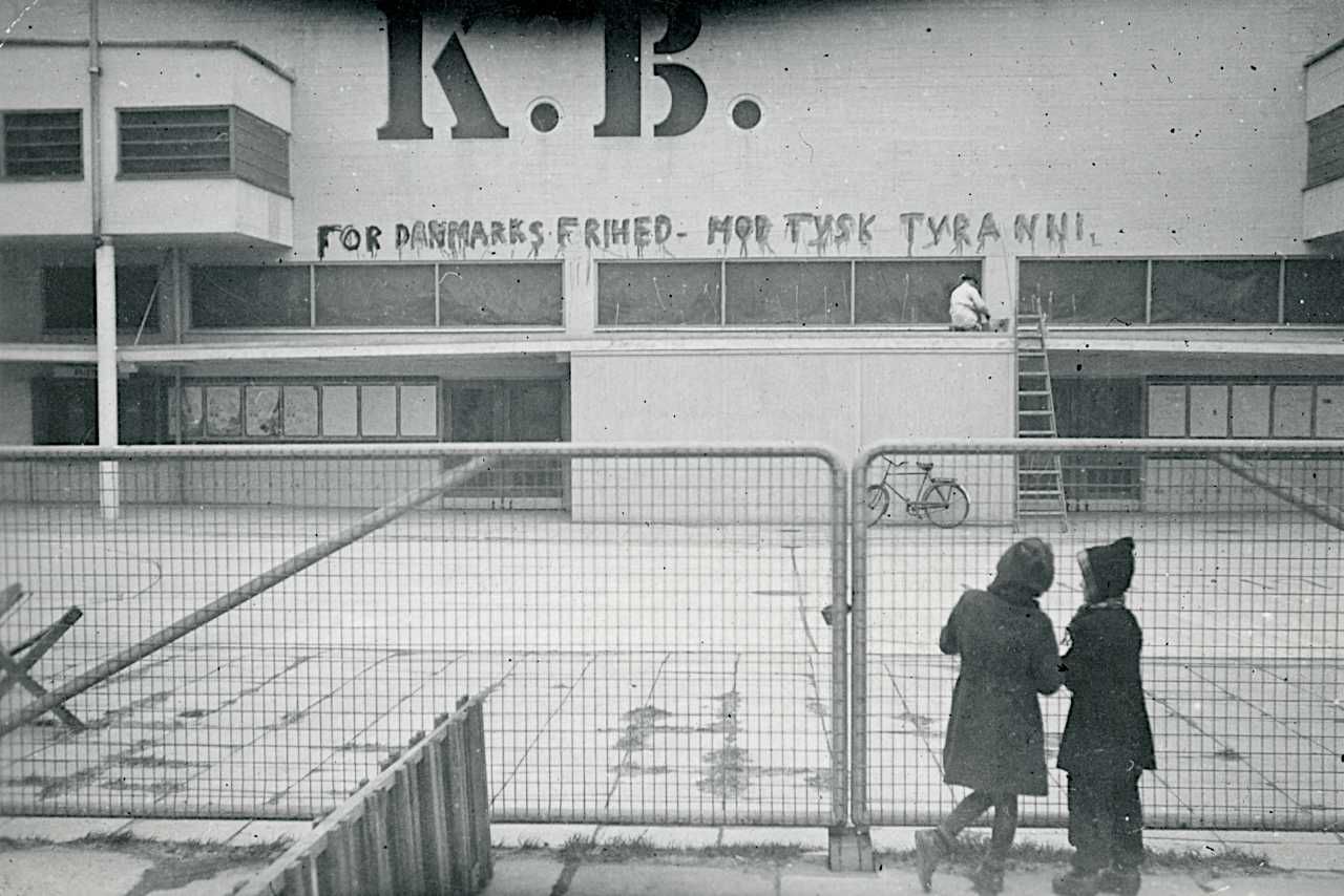 Antinazistisk propaganda på KB-Hallen i København d. 28. marts 1943