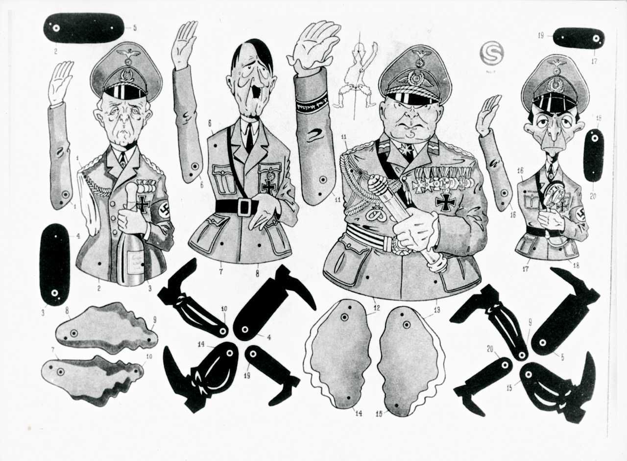 Maskingenkendt tekst fra fotokuvert: Sprællemænd af kendte tyskere.