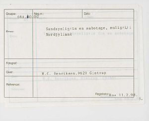 Maskingenkendt tekst fra fotokuvert: Sandsynligvis en sabotage, i NordjyIland