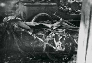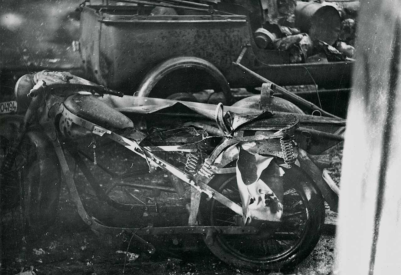 Automobilforhandler M. Olesens Service-Station efter sabotagen den 22. marts 1945.
