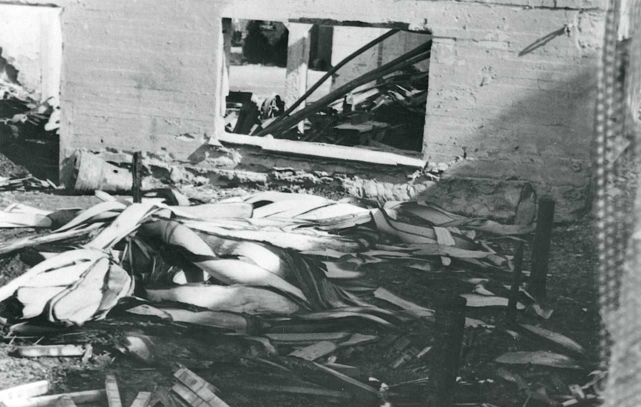 Nymark Maskinsnedkeri i Højbjerg ved Aarhus efter sabotagen den 24. marts 1944.