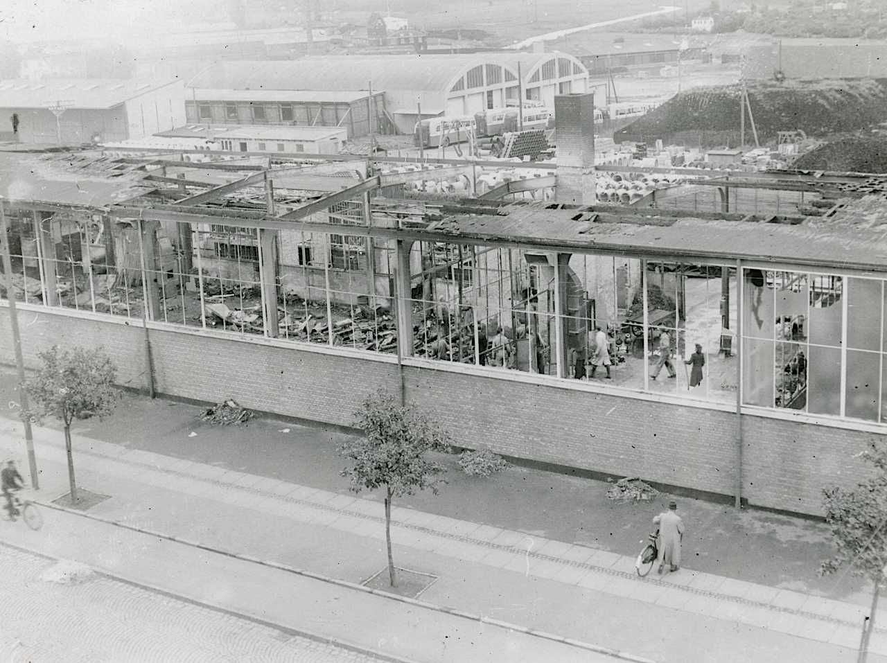 Grosserer Carl Christensens Cylinderudboringsfabrik efter sabotagen den 26. september 1944.