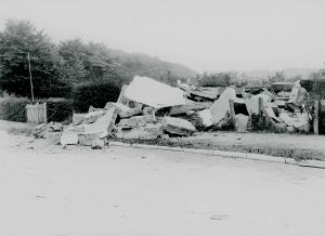 Et "gennemgangstårn" i Esbjerg efter bombeeksplosion.