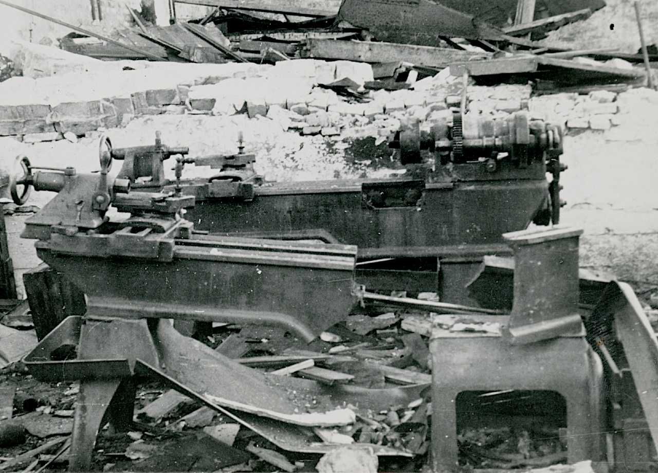 Maskinfabrikken "Hamag" i Aabenraa efter sabotagen den 6. februar 1944.