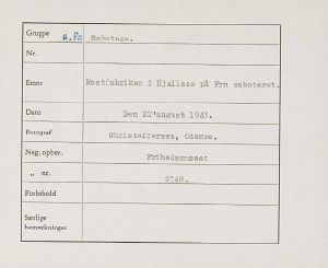 Maskingenkendt tekst fra fotokuvert: Mostfabriken i Hjallese på Fyn saboteret.