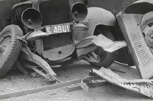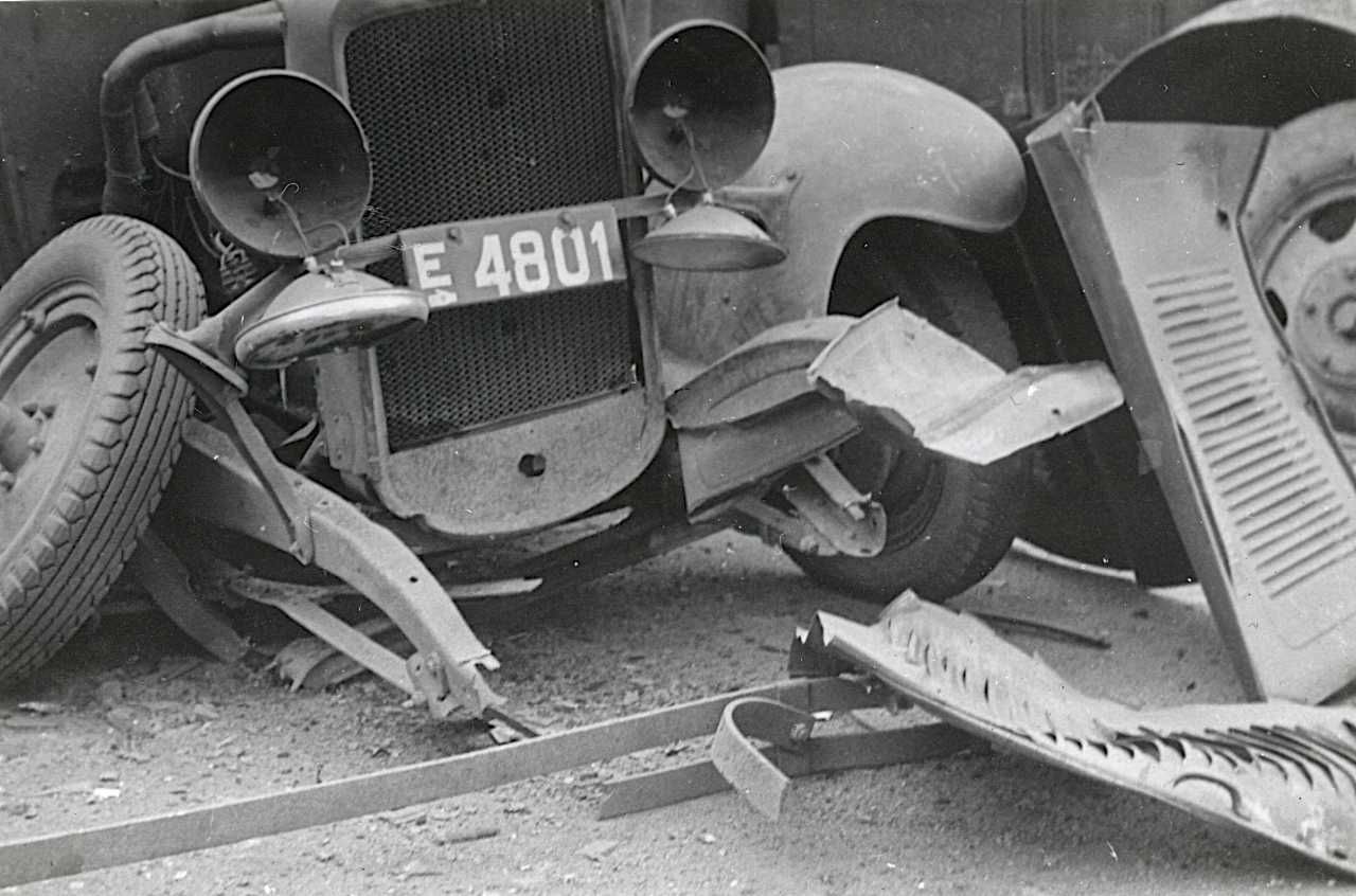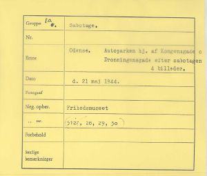 Maskingenkendt tekst fra fotokuvert: Odense, Autoparken hj. af Kongensgade, Dronningnsgade efter sabotagen