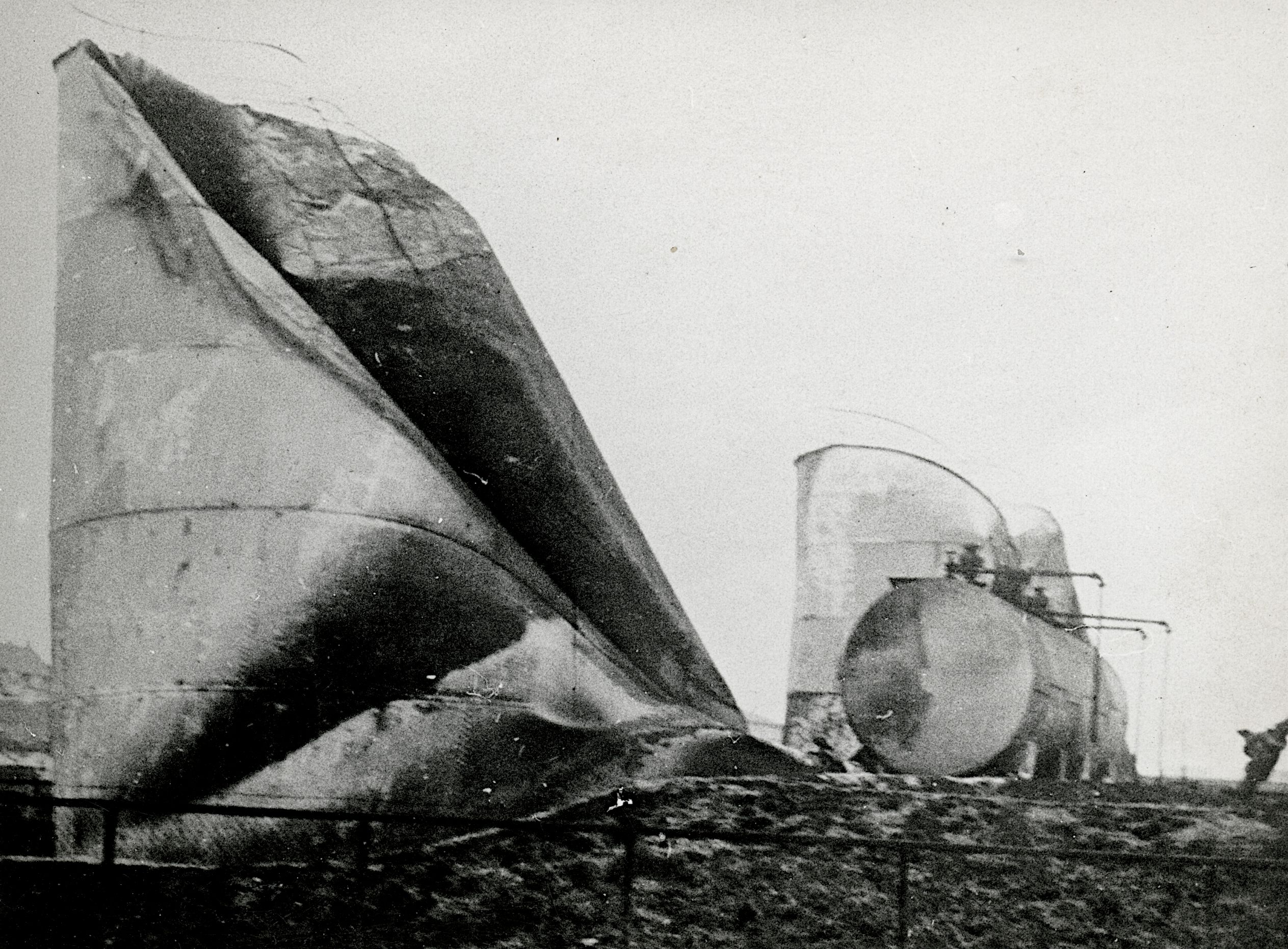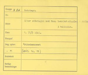 Maskingenkendt tekst fra fotokuvert: Efter sabotagen mod Esso benintankanlæg i Holbæk.