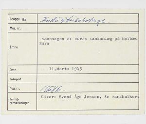 Maskingenkendt tekst fra fotokuvert: Sabotagen af DDPAs tankanlæg på Holbæk Havn