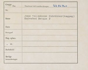 Maskingenkendt tekst fra fotokuvert: Jens Villadsens Fabrikker (tagpap) Kalvebod Brygge 2