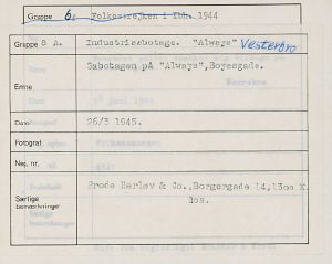 Maskingenkendt tekst fra fotokuvert: Sabotagen, på "Always", Boyesgade.