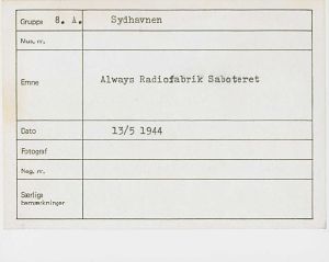 Maskingenkendt tekst fra fotokuvert: Always Radiofabrik Saboteret