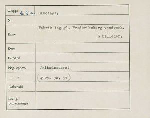 Maskingenkendt tekst fra fotokuvert: Fabrik baggi Frederiksberg vandværk.