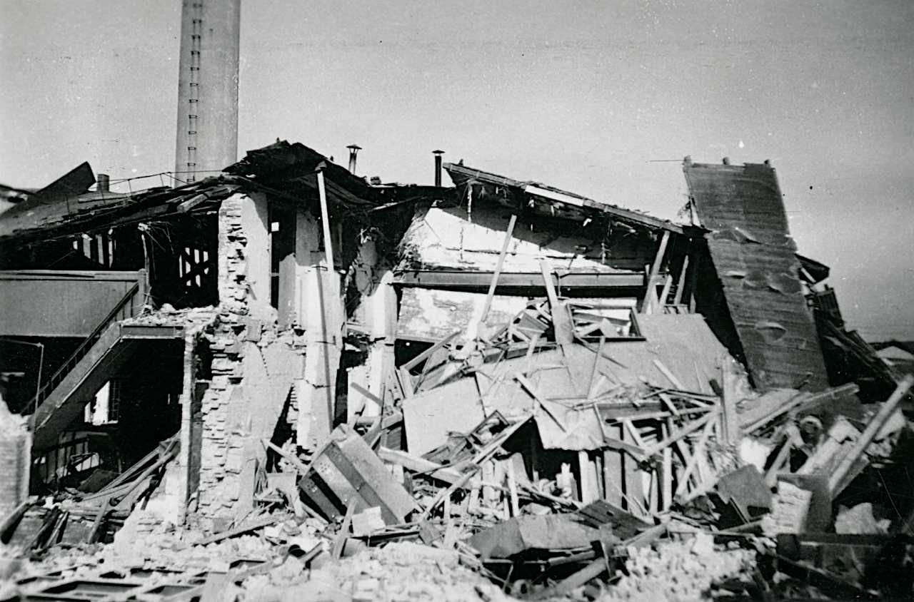 Fabrikken Generator på Borups Allé i København efter sabotagen den 11. maj 1944.