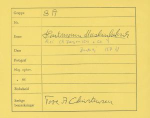 Maskingenkendt tekst fra fotokuvert: Hartmann Maskinfabrik