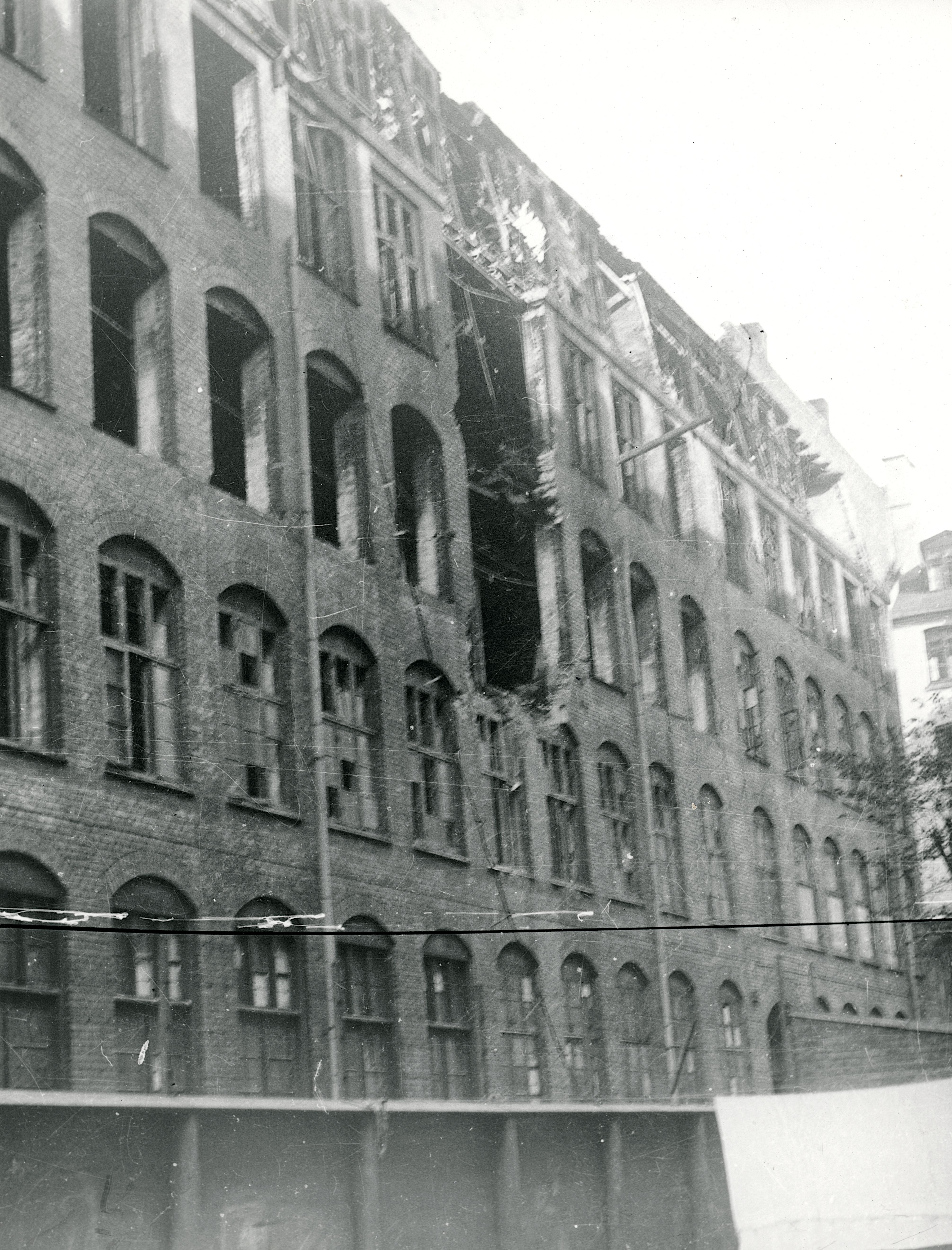 Skotøjsfabrikken Globe A/S på Stengade i København efter sabotagen den 29. september 1943.