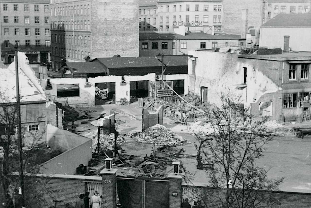 Skandinavisk Motor Co. på Lundtoftegade i København efter sabotagen den 18. april 1944.