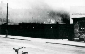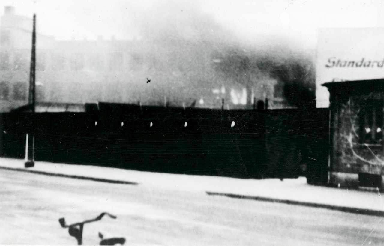 Radiofabrikken Standard Electric i København i brand efter sabotagen d. 2. december 1944