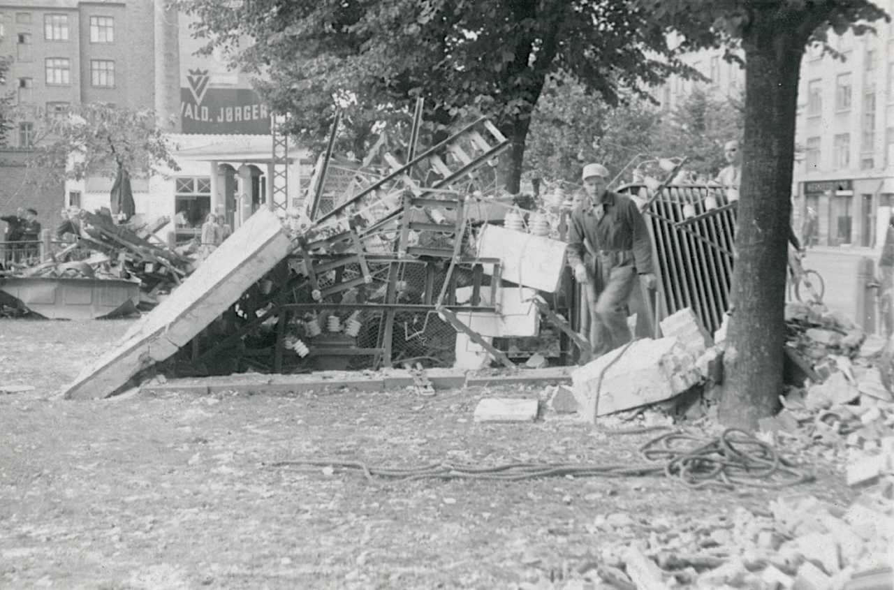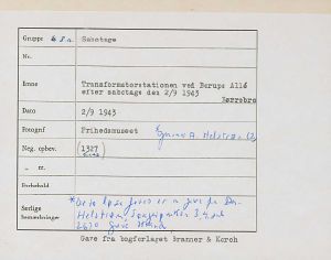 Maskingenkendt tekst fra fotokuvert: Transformatorstationen ved Borups Allé efter sabotage den 2/9 1943 Nørrebro